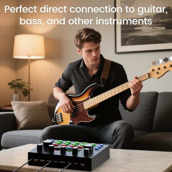 【Multi-Instrument Access】This product can directly connect electric guitars/bass/electronic drums without damage, retaining the original dynamic response. Whether live-streaming, recording, or hosting a radio show, you can directly input instrument audio to deliver pristine sound quality that authentically captures your performance.