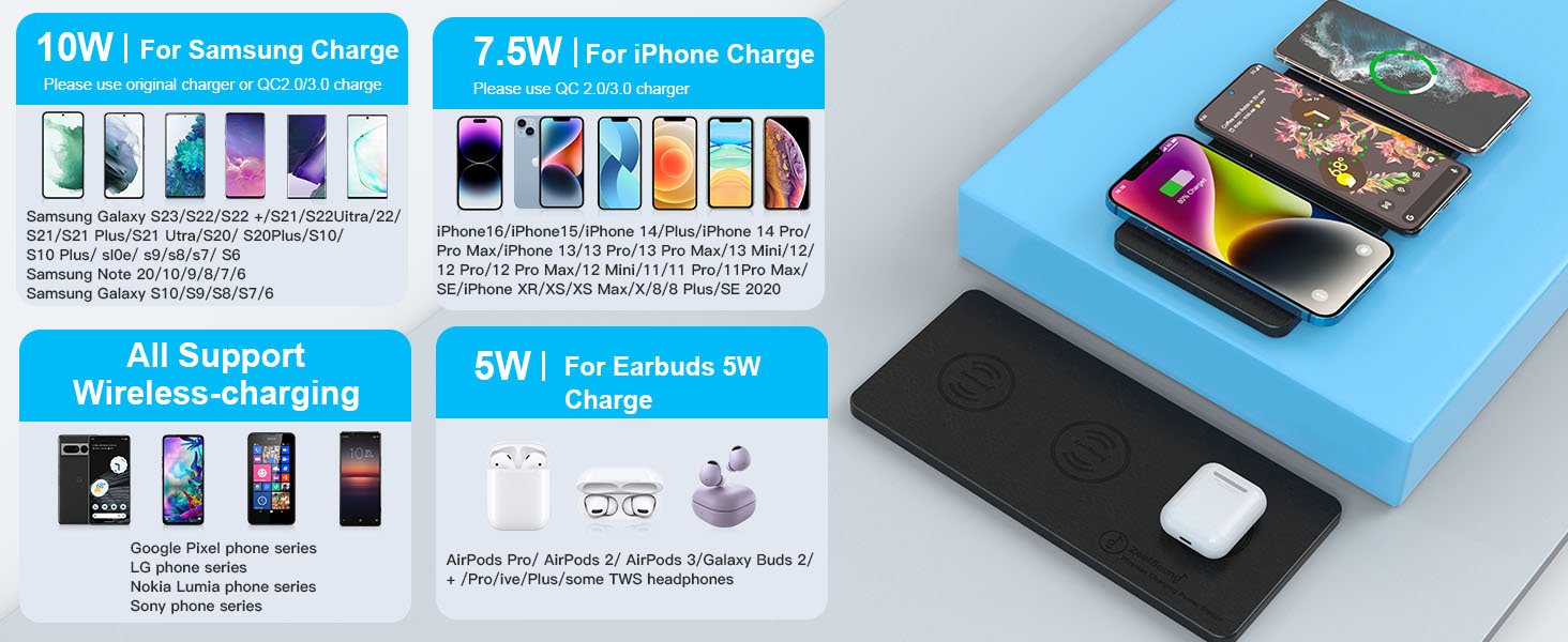 ZealSound 3-in-1 Wireless Charging Pad (Black)