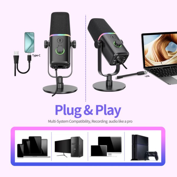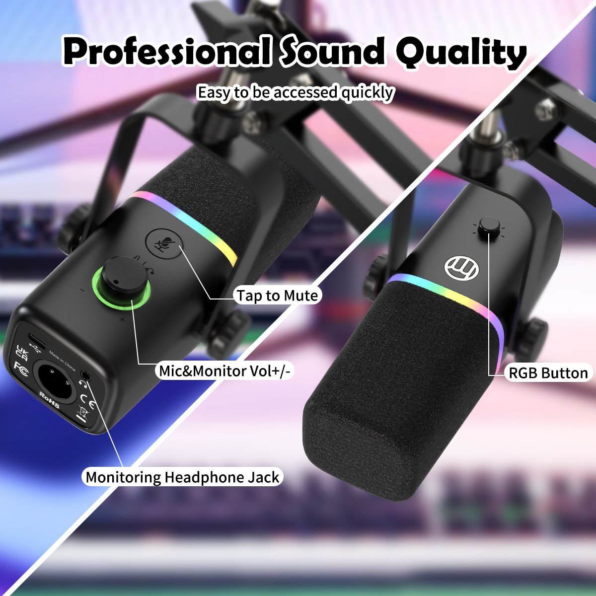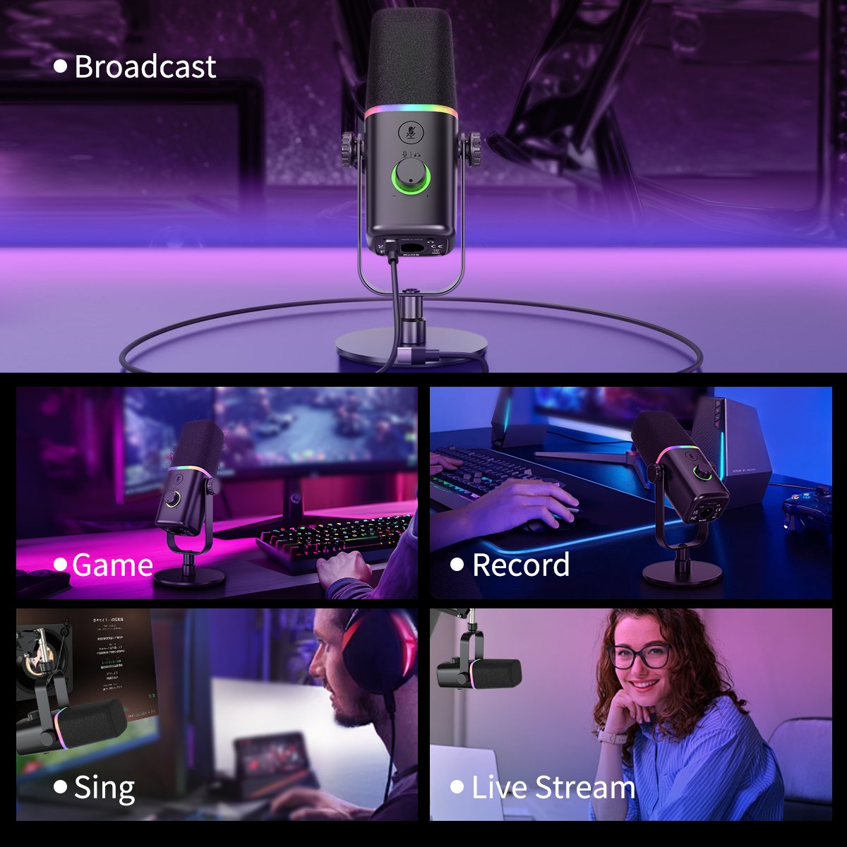 - [Upgraded USB/XLR Connectivity]This versatile PC gaming microphone kit features USB compatibility for streaming or recording on PC and XLR compatibility for connecting to mixers or sound cards for vocals, podcasts, or music creation. Additionally, this podcast microphone for phone, Pad, For MacBook, and For Android tablet.