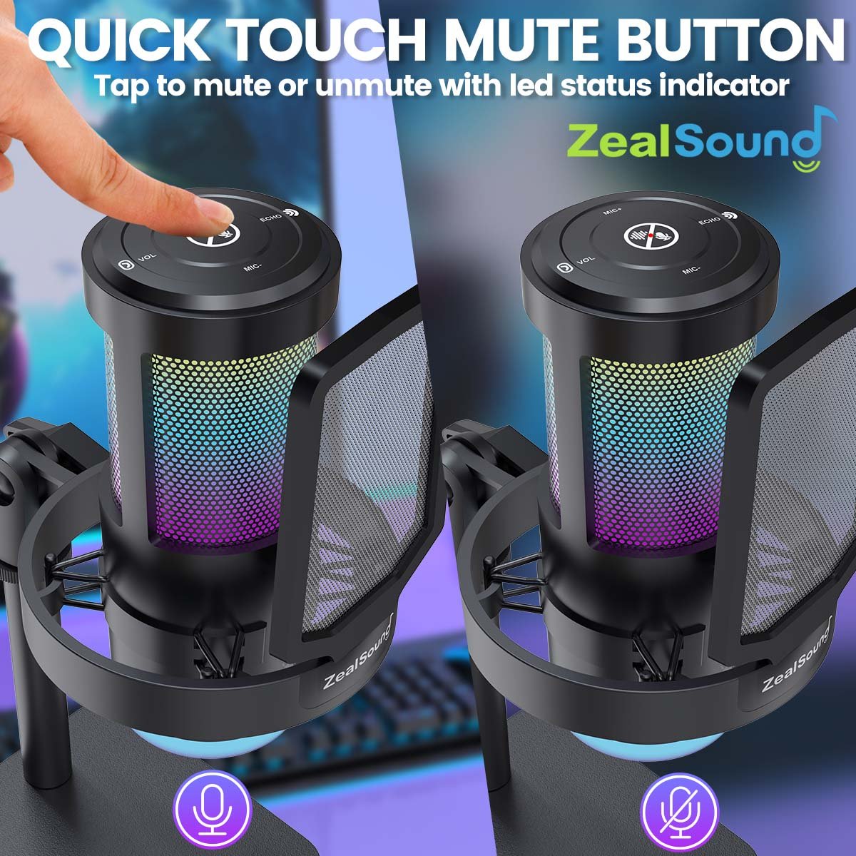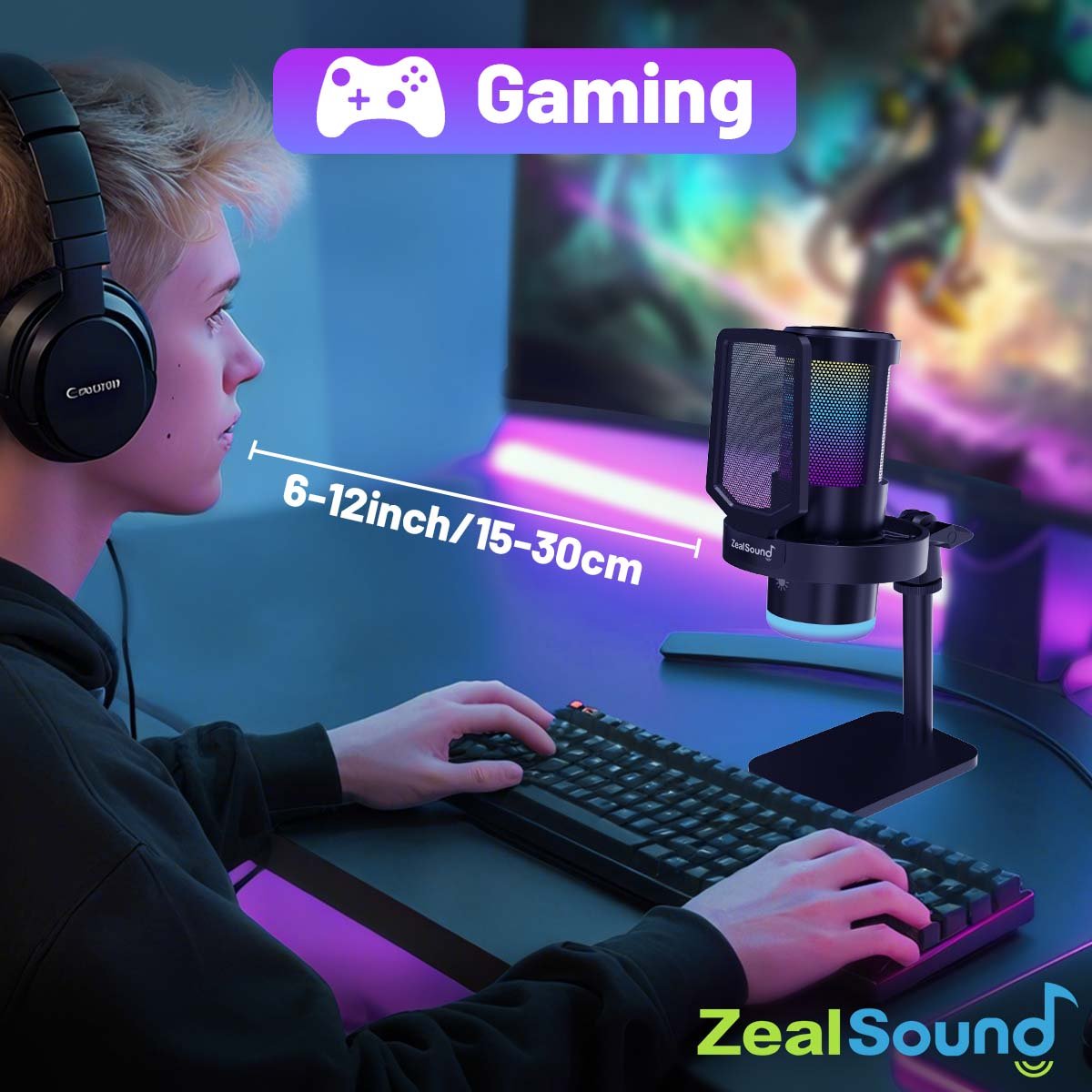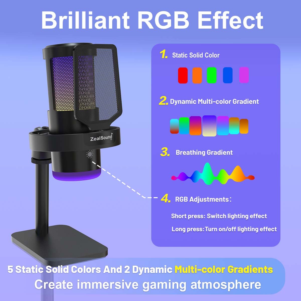 【Stunning RGB Lighting with 5 Solid Colors & 2 Dynamic Modes】: Featuring 5 static solid colors and 2 dynamic multicolor gradients, this gaming microphone adds an immersive visual experience to your setup. Easily match your mood or gaming theme with vibrant lighting effects that bring your desk to life.