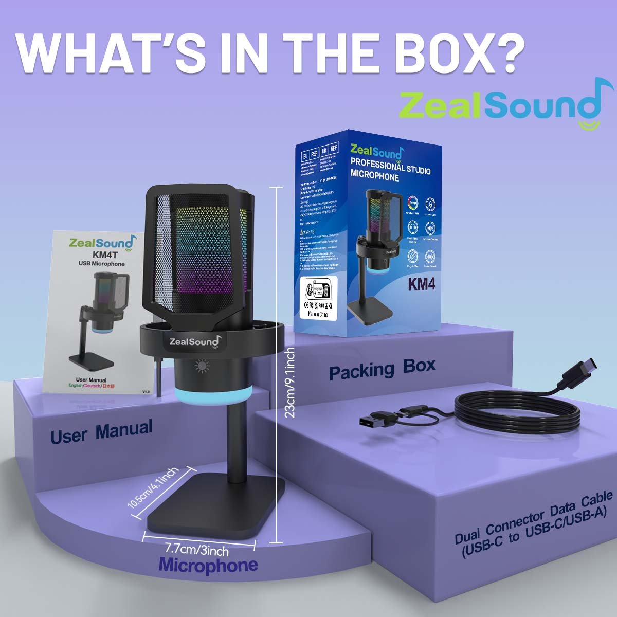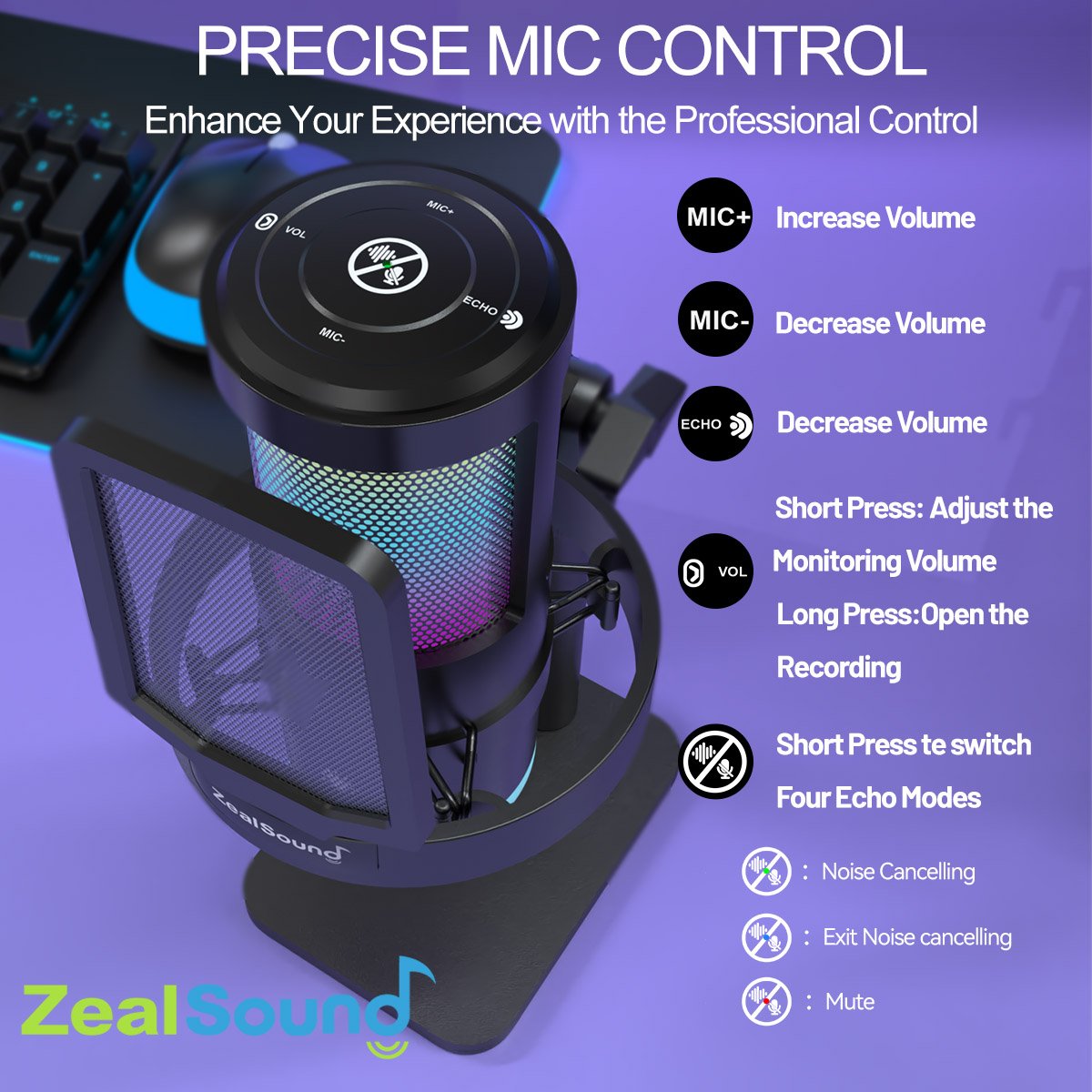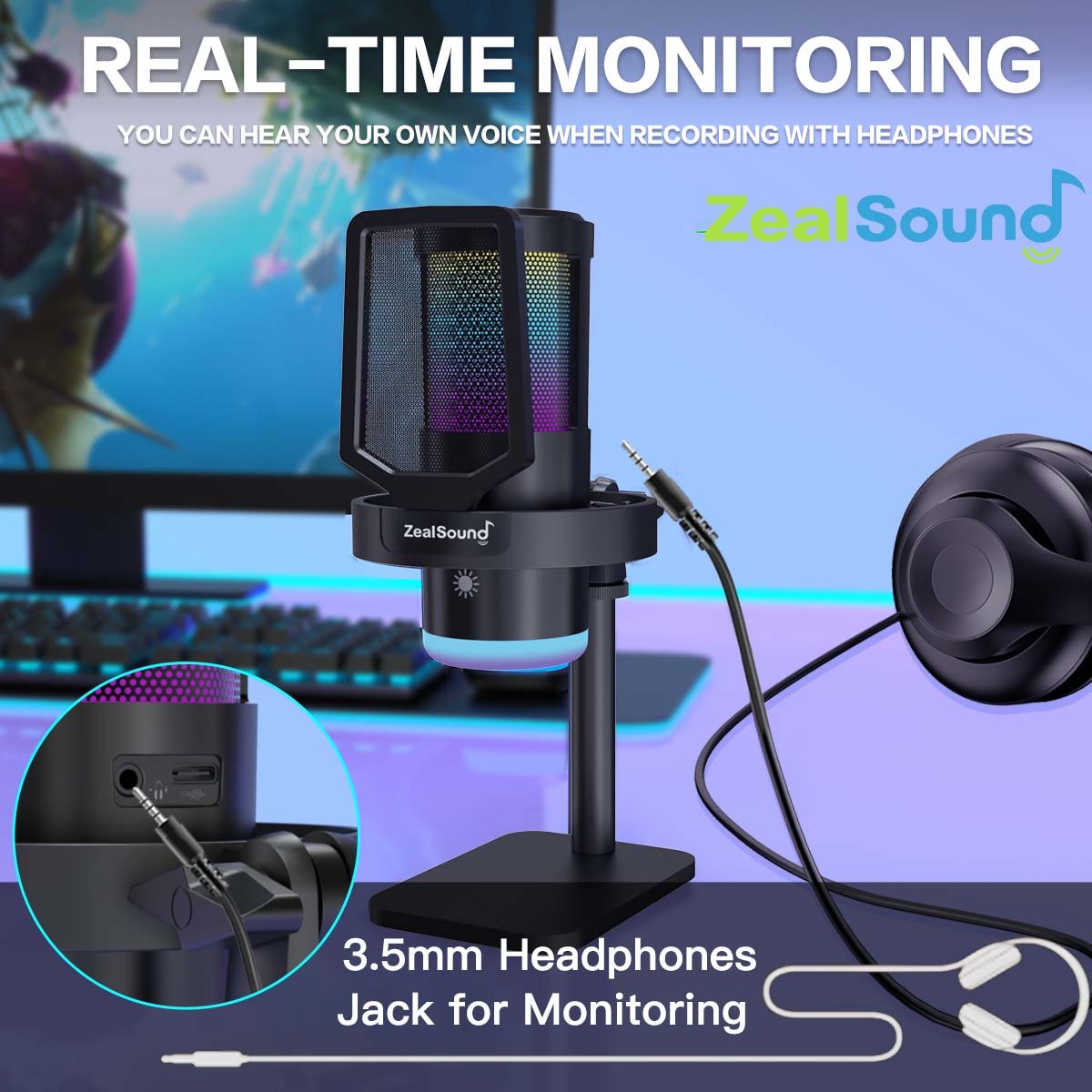 【Stunning RGB Lighting with 5 Solid Colors & 2 Dynamic Modes】: Featuring 5 static solid colors and 2 dynamic multicolor gradients, this gaming microphone adds an immersive visual experience to your setup. Easily match your mood or gaming theme with vibrant lighting effects that bring your desk to life.