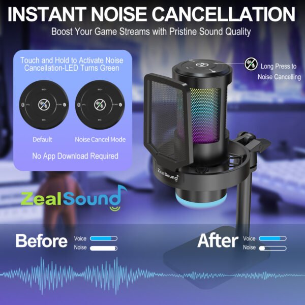 【Natural Voice Clarity with One-Key Noise Cancellation】: Experience crisp and professional sound with a single touch. Long press for 3 seconds to activate noise cancellation, effectively filtering background noise for clearer communication. The cardioid pickup pattern captures your voice from the front with precision — perfect for gaming, streaming, chatting, or podcasting.