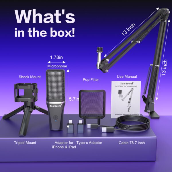 ZealSound Gaming USB Microphone,Noise Cancellation Condenser mic