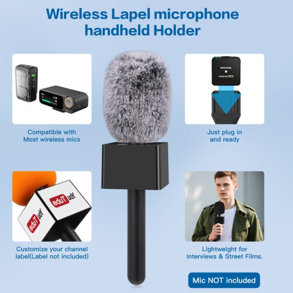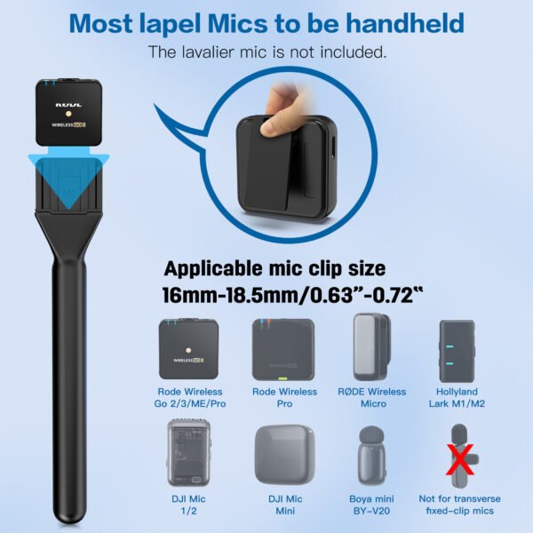Instantly transform your lavalier mic into a professional handheld setup – ideal for streaming, interviews, podcasts, and social media content. Works seamlessly with DJI, Rode, and Hollyland systems.