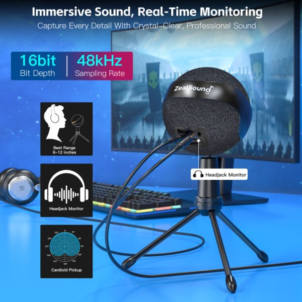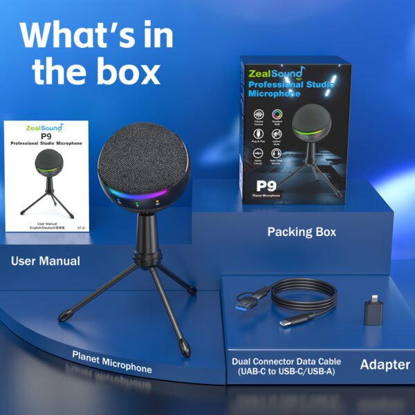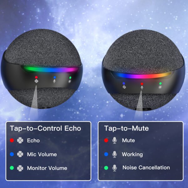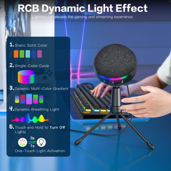 ZealSound P9 Microphone for iPhone,USB mic for PC gaming,Phone,Touch Mute,Active Noise Cancel microphones with Echo/RGB/Volume Gain,Real Time Monitor,Podcast,ASMR Gaming Zoom YouTube Discord Twitch Video