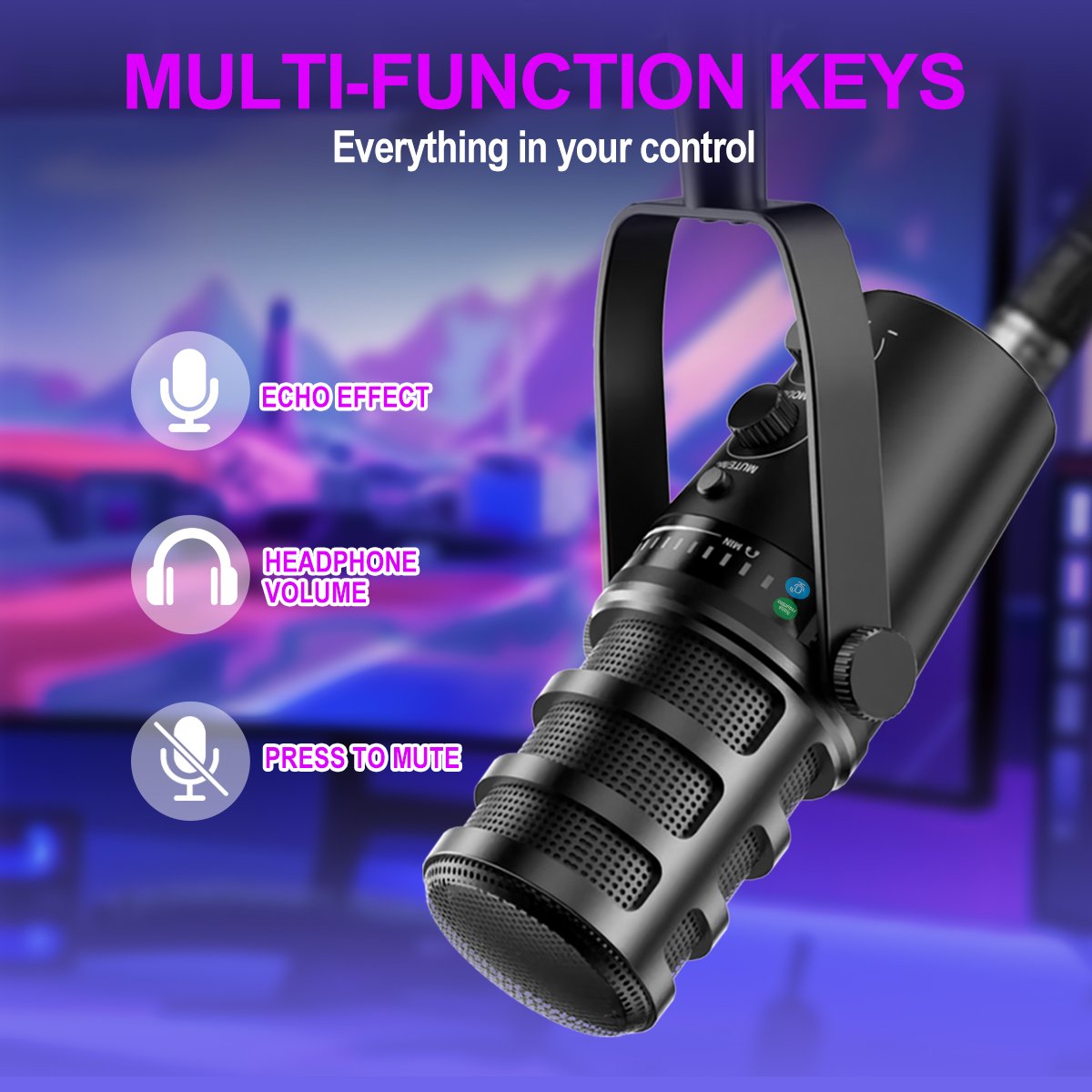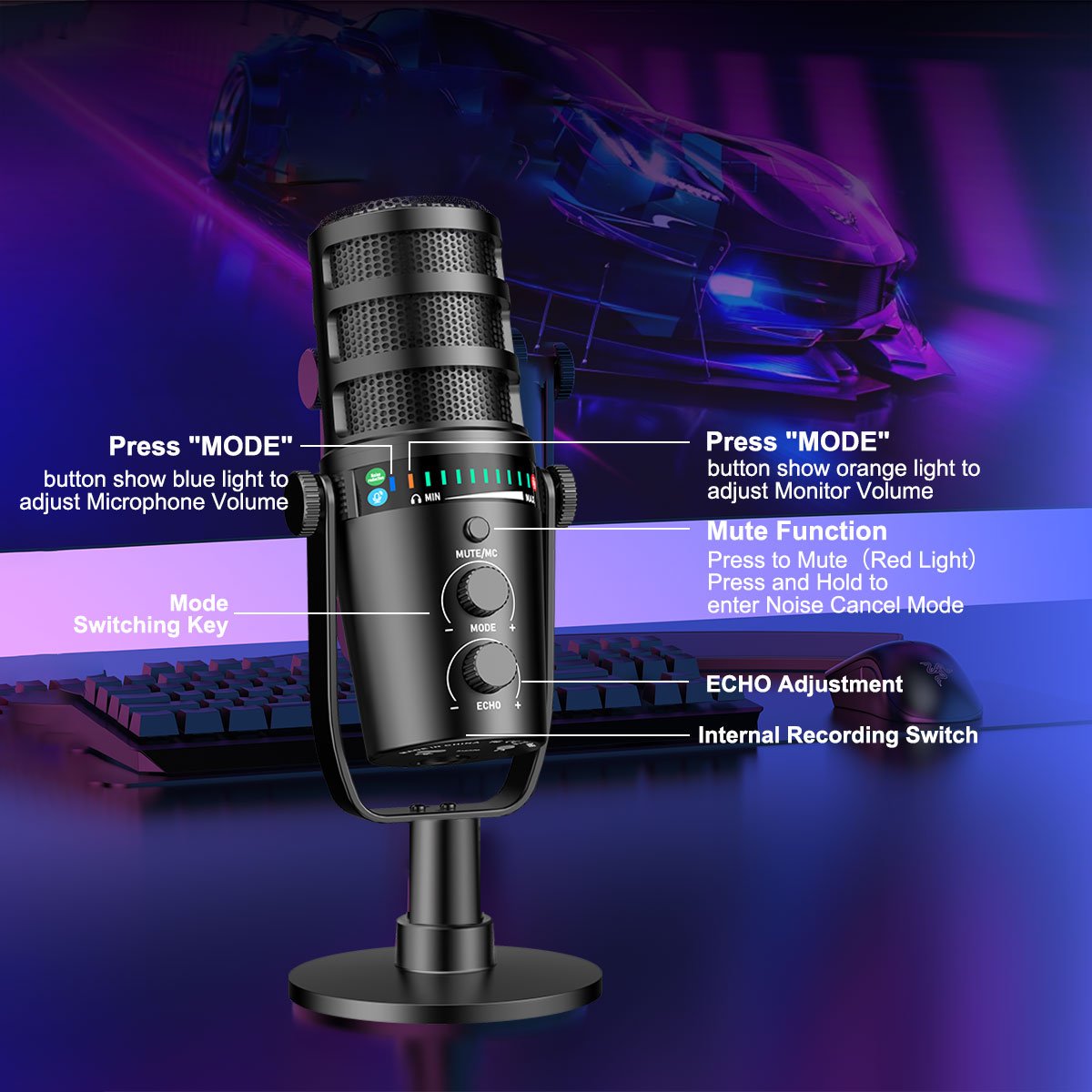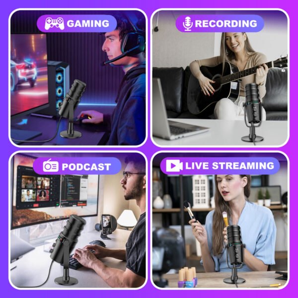 - Designed for gamers, streamers, and content creators, this USB microphone delivers studio-quality sound for immersive gameplay, live broadcasts, and voice chats. The USB Type-C plug-and-play design ensures instant compatibility with PCs, laptops, and phones—no drivers needed.