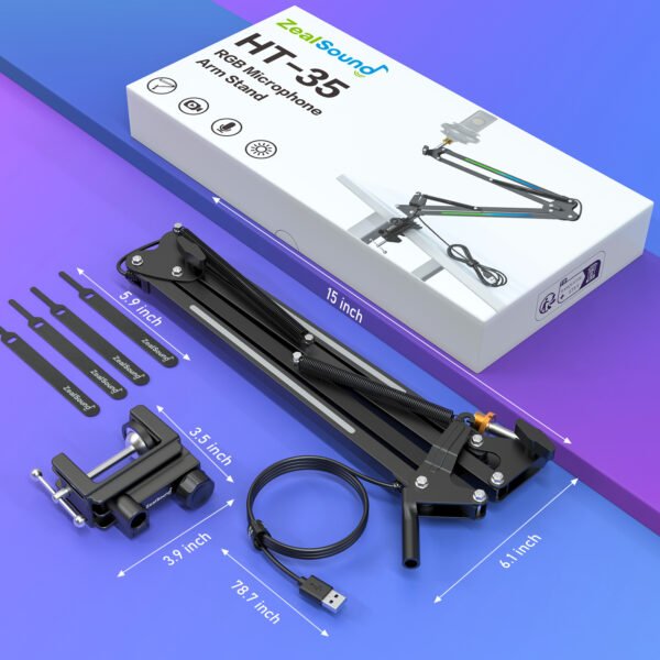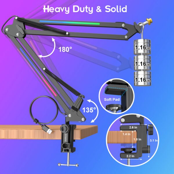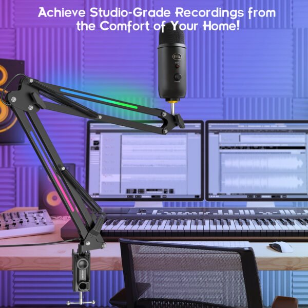 ZealSound RGB Microphone Arm Stand,Mic Arm with RGB Light for QuadCast/Blue Yeti/Snowball/Shure SM7B/Rode NT1/Elgato,Rotatable Suspension Boom Scissor Stand for Gaming Streaming Podcasting YouTube