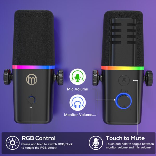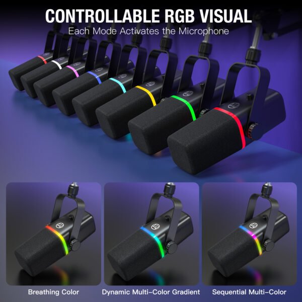 The gaming mic boasts an RGB ring with 4 modes and over 20 colors, allowing for easy customization using the mic’s button during gaming or streaming. Its handy memory function remembers your last color selection, automatically lighting up when powered on (USB connection only; no power with XLR).